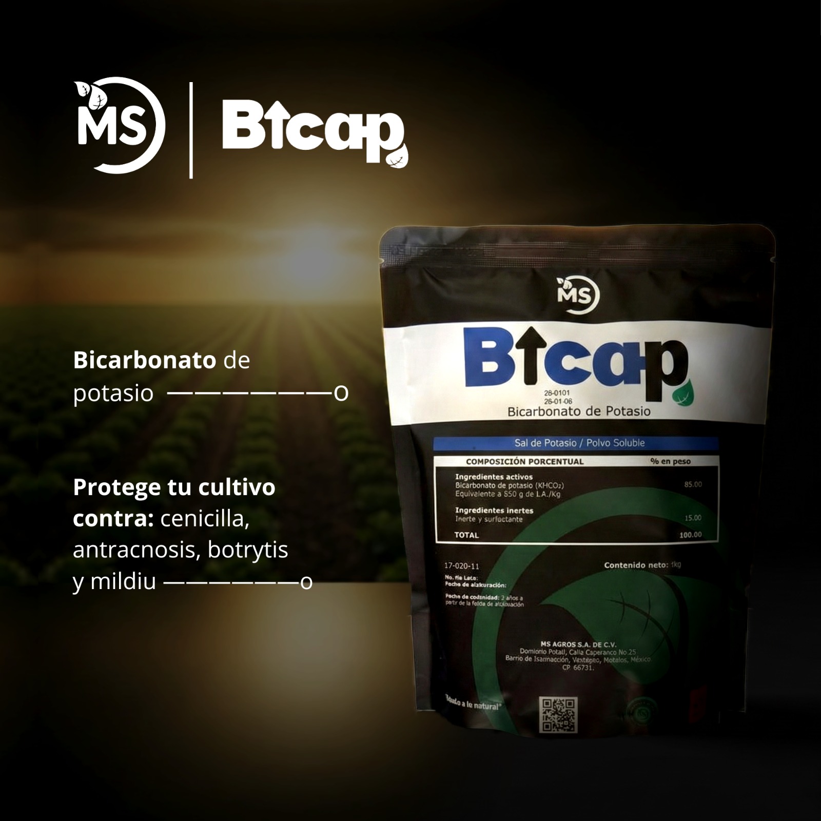 BICAP ejerce su acción al inhibir y deshidratar hongos patógenos mediante la alteración del equilibrio osmótico celular, provocando la destrucción de la pared y el núcleo de los microorganismos. Sus sales de potasio penetran en el tejido vegetal, protegiendo al cultivo desde el interior y fortaleciendo sus defensas naturales. Además, contribuye a la corrección de suelos ácidos y aporta potasio esencial, lo que se traduce en una acción tanto preventiva como curativa, asegurando mayor vigor y resistencia en la planta.